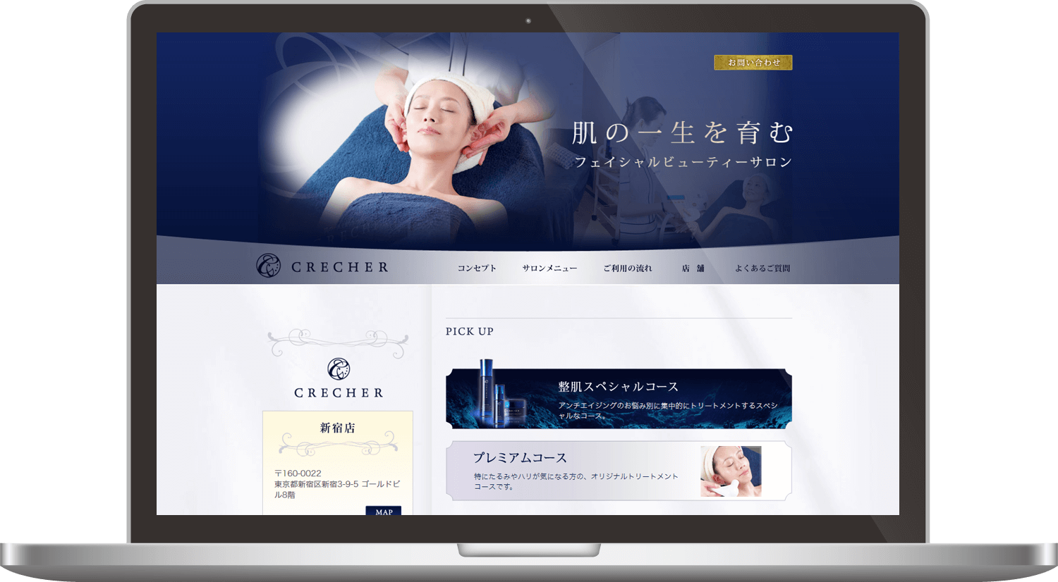 クレシェールサロン様は「肌育」をテーマにしたスキンケア化粧品会社「クレシェール化粧品」がプロデュースする、化粧品メーカー直営のサロンです。「年齢引き戻し」をコンセプトに新宿にてサロンを開かれています。