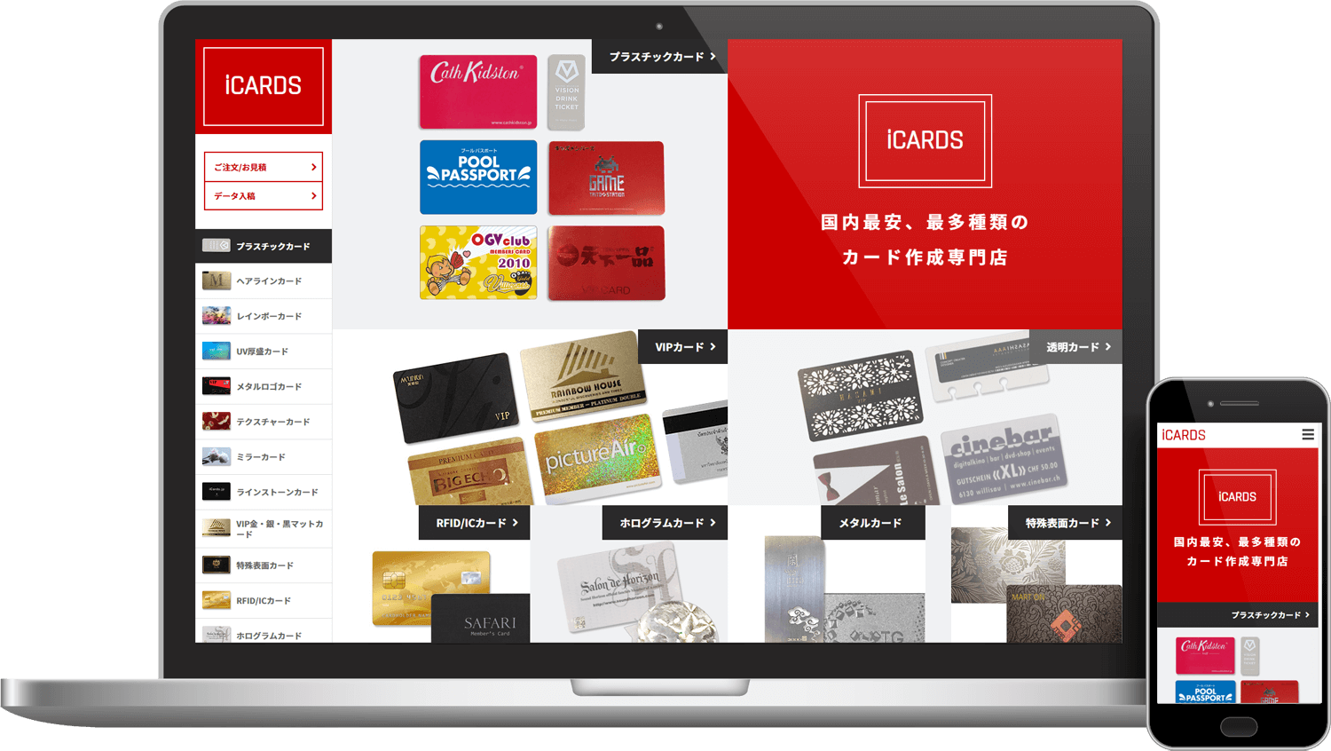 国内最安、最多種類のカード作成専門店、iCARDS様の公式ページの制作になります。