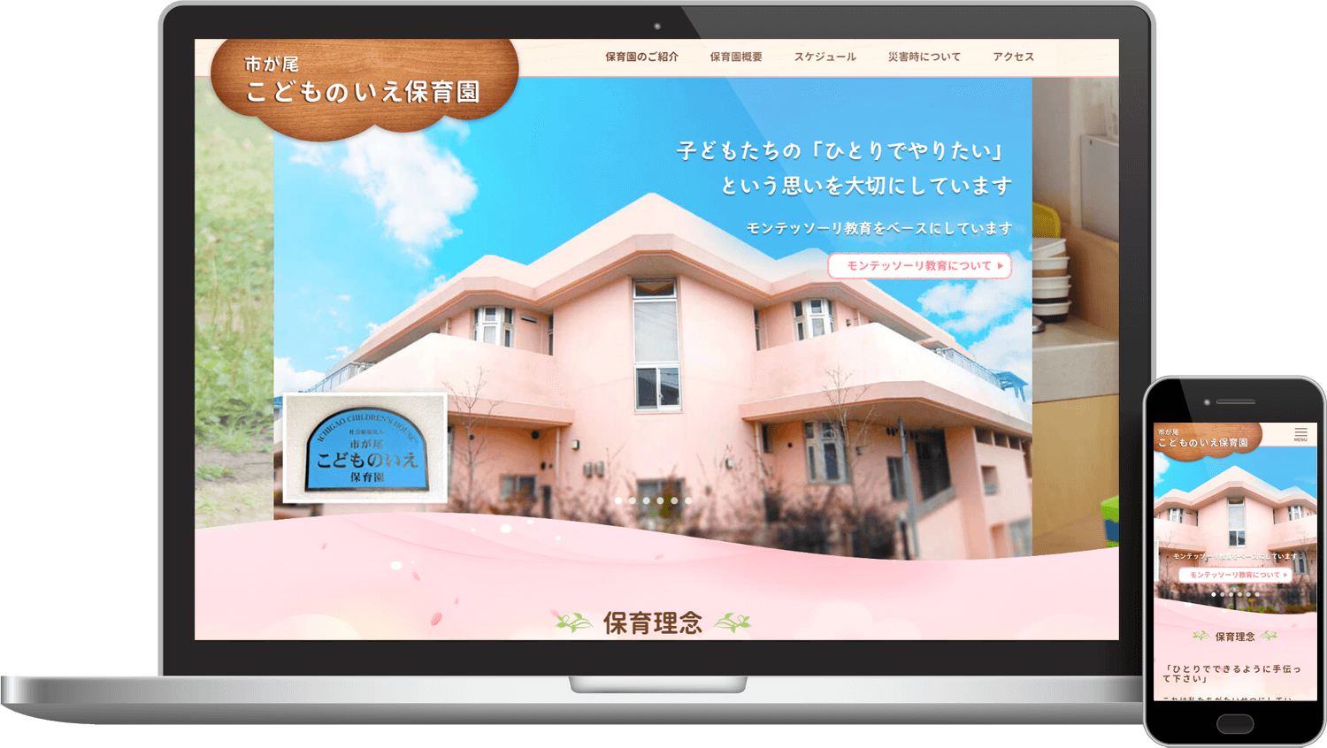 市が尾こどものいえ保育園様の公式サイトの制作になります。社会福祉法人 たかね福祉会様が運営されている保育園の一つです。 横浜市青葉区にあり、モンテッソーリ教育の考えをベースに保育を行っていらっしゃいます。 広い園庭、ピンクの園舎にゆったりとした教室です。暖かい保育を感じられる先生方がいらっしゃいます。