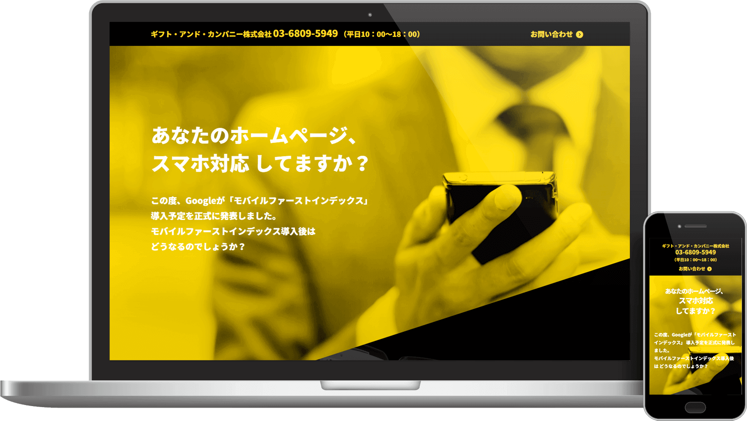 ギフト・アンド・カンパニー様のモバイルファーストインデックスのサービスLPになります。 Googleからモバイルファーストインデックスの情報が来ていますよ、とお知らせした所まだまだ対応していない業界が多いので、サービスの一環としてランディングページとパンフレットを制作したいというお話でした。 このサービスからお受けしてモバイル対応した会社さんもいらっしゃいます。