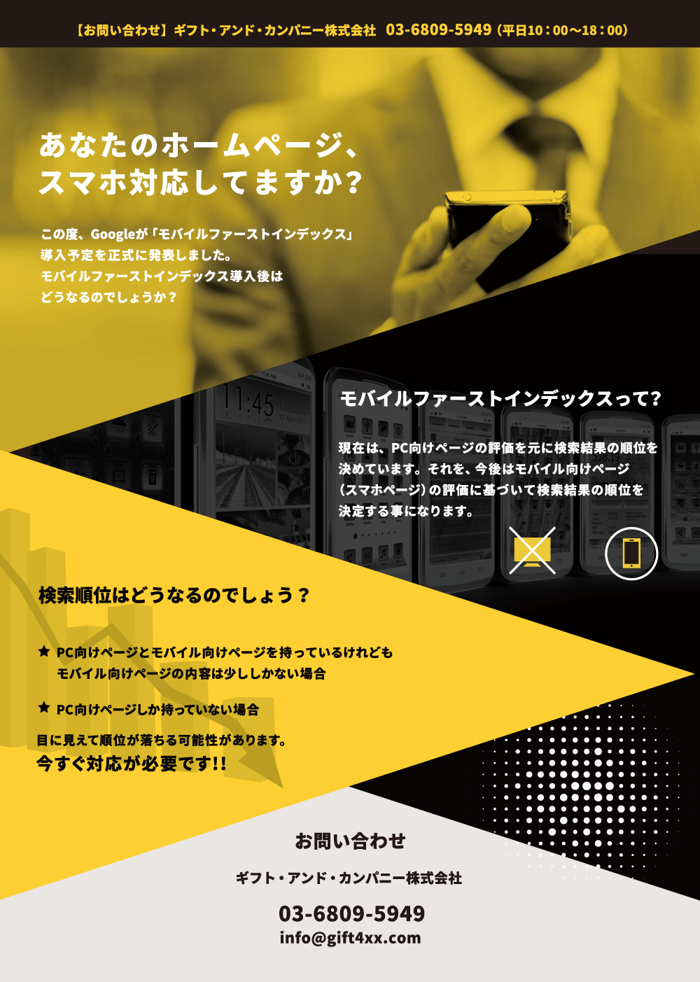 ギフト・アンド・カンパニー様のモバイルファーストインデックスのサービスのチラシになります。