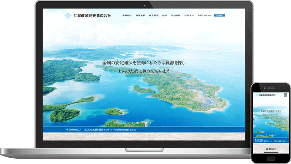 資源調査、探査・開発、試錐その他事業を行う住鉱資源開発株式会社様の公式サイトの制作になります。